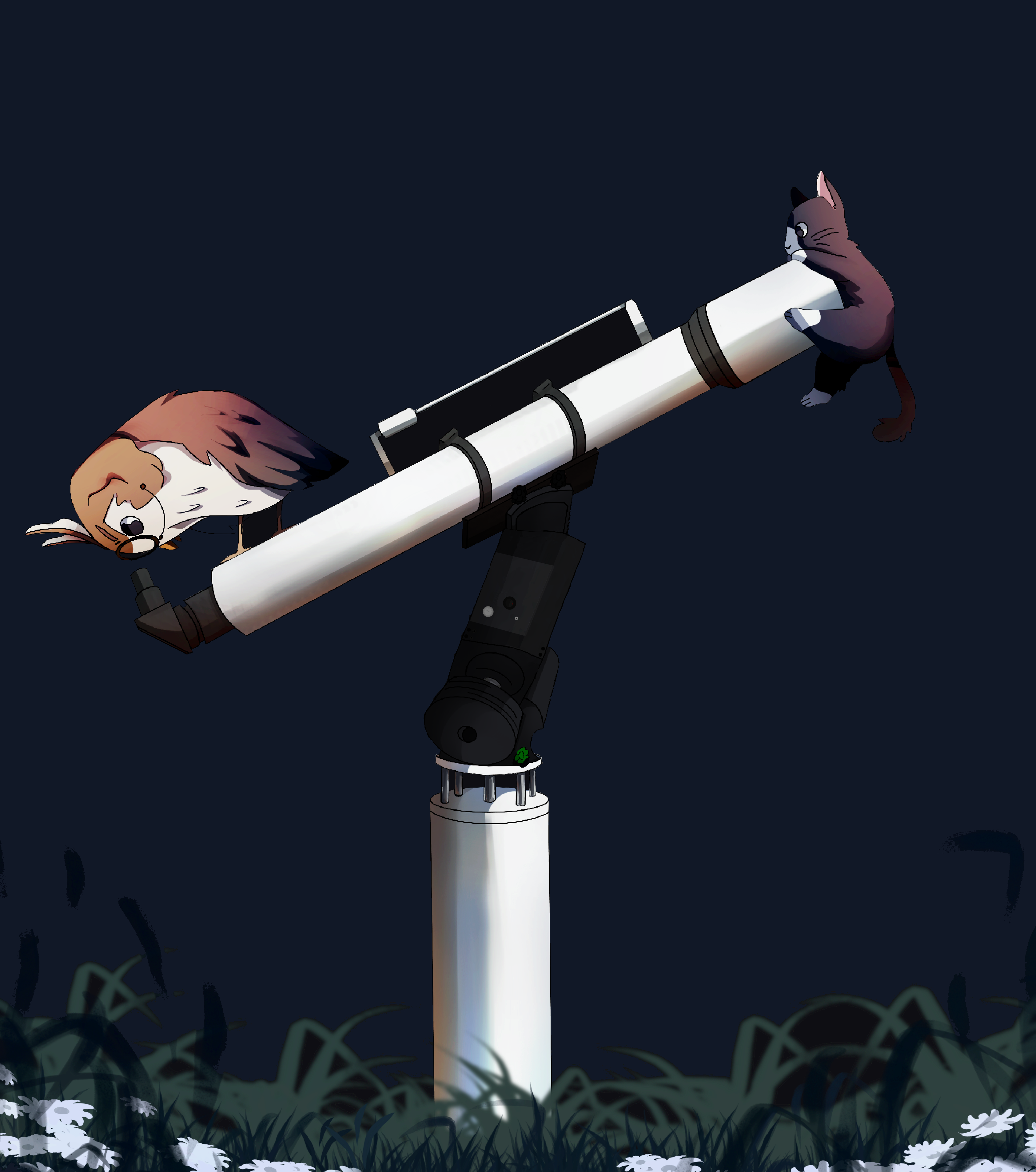 Im Anschluss führte ich die Gäste durch die Sternbilder, bevor wir an die Teleskope gingen. Ich zeigte einiges an meinem 16-Zoll-Dobson, während ich auch drei Ferngläser zum Durchsehen herumreichte. Michael kümmerte sich um mein Lichtenknecker-Teleskop, und Daniel nutzte teils mein 102/714-Teleskop, das ich für diesen Abend von einem H-alpha- Instrument zu einem Widefield-Apo umgebaut hatte. Bei außergewöhnlich gutem Seeing nahm Daniel mit seinem Setup die „Knochenhand“ im Cirrusnebel auf. Unter den zahlreichen Besuchern war auch ein kleiner Junge, der mit seinem Wissen beeindruckte und von seinem eigenen kleinen Linsenteleskop erzählte. Gegen 2:00 Uhr nachts verabschiedeten sich die meisten Gäste, doch einige meiner Freunde blieben noch, um gegen 3:00 Uhr den Jupiter zu beobachten.
